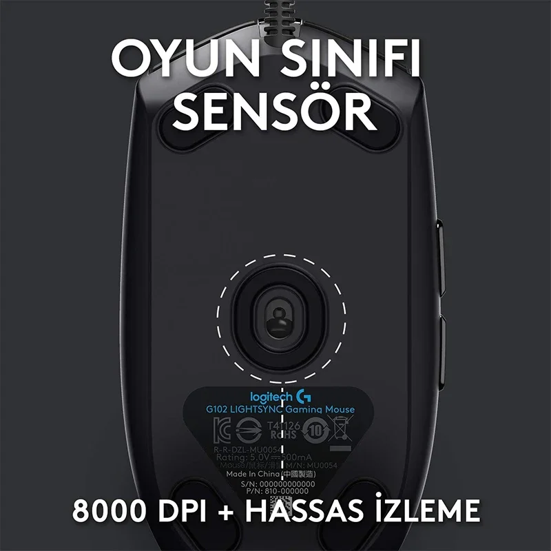 DESCRIPTION: Logitech G G102 Gaming Mouse. Device interface: USB type A, Motion resolution: 8000 DPI, Response time: 1 ms, Button type: Pressed buttons, Number of buttons: 6, Slimming type: Wheel. illuminating colour: Multi. Power supply: Cable. Colour of product: Black